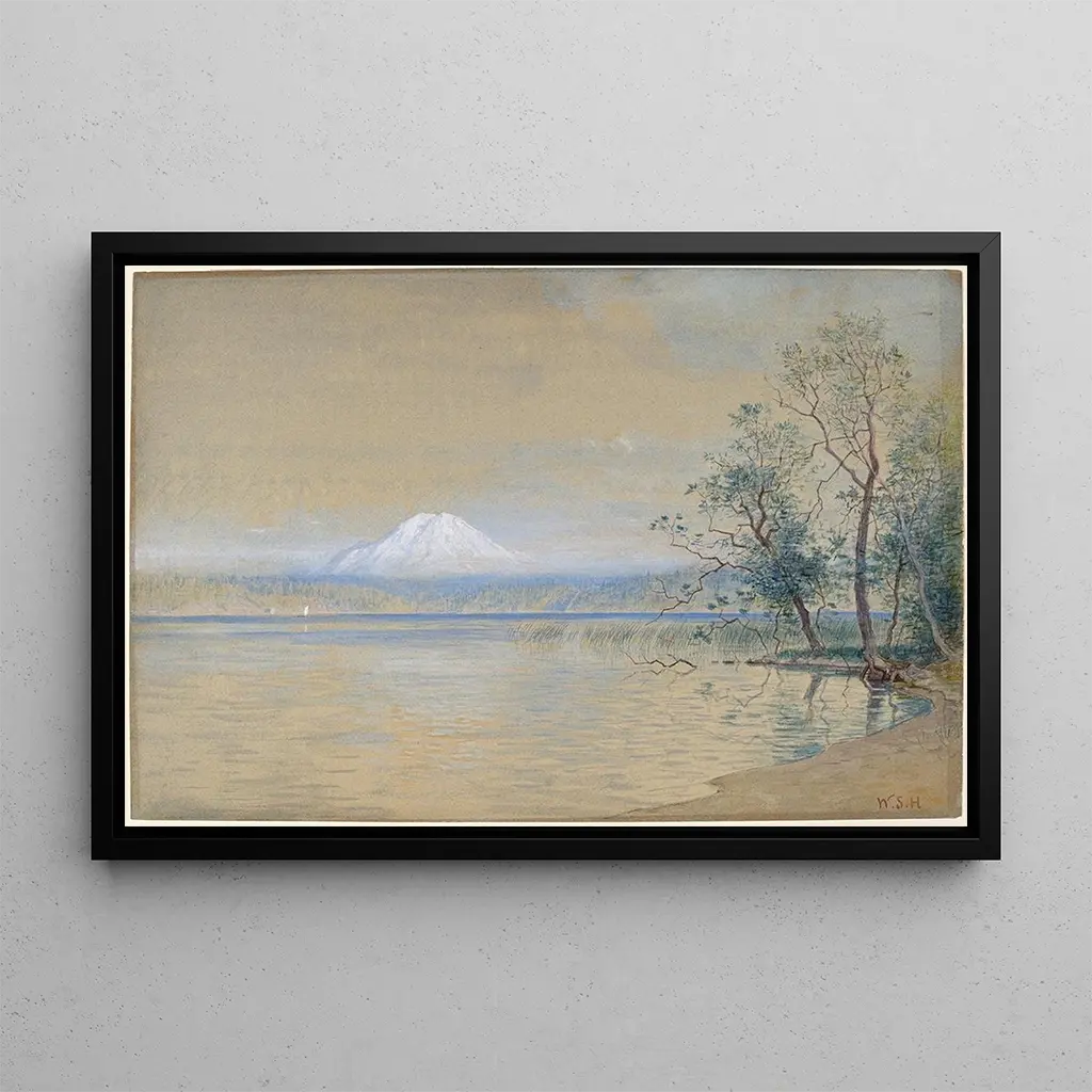 The art print Mont Tacoma, created by William Stanley Haseltine, transports us to a grand landscape where nature expresses itself with strength and delicacy. The shades of blue and green blend harmoniously, evoking the serenity of snowy peaks and the lush greenery of valleys. The oil painting technique allows the light to be rendered in an almost tangible way, creating an atmosphere of tranquility and wonder. Each brushstroke seems to capture the very essence of this iconic place, inviting the viewer to a meditative contemplation.
