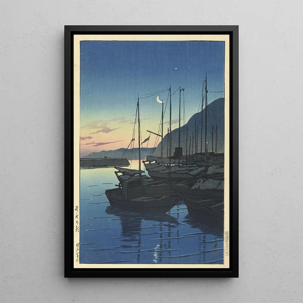 Le tableau Matin à Beppu de Kawase Hasui évoque une atmosphère paisible et contemplative. Les teintes douces de bleu et de vert se mêlent harmonieusement, créant une sensation de tranquillité. La technique de l'art print sur bois, caractéristique de l'art japonais, permet de capturer la lumière subtile du matin, tandis que les détails délicats des paysages et des bâtiments invitent à une immersion totale. Cette œuvre transporte le spectateur dans un moment suspendu, où la nature et l'architecture se rencontrent avec grâce.