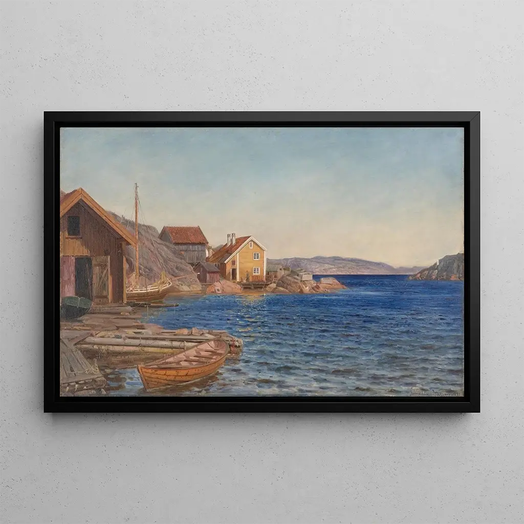Morning at Ny-Hellesund: a symphony of light and serenity In this captivating artwork, Amaldus Nielsen transports us to a peaceful morning in Ny-Hellesund, a small Norwegian village. The canvas displays a palette of soft colors, where shades of blue and green blend harmoniously, evoking the freshness of dawn. Nielsen's impressionist technique, with its fluid brushstrokes and ability to capture light, creates an atmosphere of tranquility and contemplation. The reflections on the water and the gentle natural forms invite the viewer to immerse themselves in this idyllic landscape, where every detail seems to breathe peace. Amaldus Nielsen: a master of Scandinavian landscapes Born in 1850, Amaldus Nielsen is a Norwegian painter renowned for his marine landscapes and scenes of nature. Influenced by Impressionism, he developed a unique style that highlights the beauty of Scandinavian scenery. Nielsen spent part of his life traveling, which allowed him to absorb the different lights and atmospheres of the places he painted. His work is often associated with the pursuit of light and color, essential elements of his artistic legacy. As an important figure in the Impressionist movement in Norway, he contributed to showcasing the richness of Nordic landscapes through his paintings. A decorative acquisition with multiple assets The art print of Morning at Ny-Hellesund is an ideal decorative piece to bring a touch of serenity to your interior. Whether in a living room, office, or bedroom, this artwork evokes a soothing atmosphere that invites dreaming. Its reproduction quality guarantees fidelity to the details and colors of the original work, allowing you to enjoy the refined aesthetics of Amaldus Nielsen. With its visual appeal and relaxing ambiance, this canvas fits perfectly into various decor styles, making it a wise choice to enhance your living space.