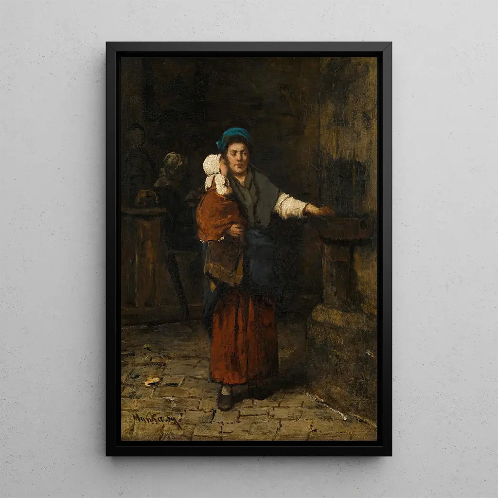 Mihály Munkácsy, born in 1844, is one of the most influential artists of the realist movement in Hungary. Trained at the Academy of Fine Arts in Munich, he was heavily influenced by the great European masters, notably Rembrandt and Courbet. His career, marked by iconic works, was dedicated to depicting everyday life and human emotions. "Mother and Child" fits into a period when art turned toward more personal and intimate themes, reflecting the social and family concerns of his time. Munkácsy was able to capture the essence of life with a unique sensitivity, making him an essential figure in Hungarian art.