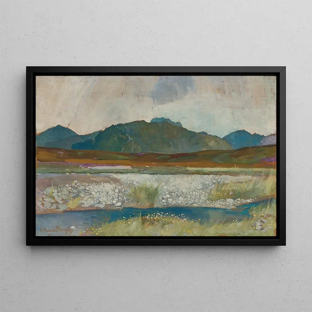 Paysage de Lac Montagneux: a natural serenity to explore The painting "Paysage de Lac Montagneux" by Edward Reginald Frampton evokes an atmosphere of peace and tranquility. The shades of blue and green blend harmoniously, creating an idyllic landscape where the lake reflects the majestic mountains. Frampton's technique, characterized by delicate brushstrokes and meticulous attention to detail, brings this natural scene to life. The overall composition invites contemplation, transporting the viewer to a world where nature reigns supreme, far from the chaos of daily life. Edward Reginald Frampton: a master of British landscape painting Edward Reginald Frampton, active in the late 19th and early 20th centuries, is renowned for his enchanting landscapes that capture the beauty of nature. Influenced by the Impressionist movement, he developed a unique style that combines realism and poetry. Frampton often explored themes of light and atmosphere, which allowed him to stand out among his contemporaries. His work, though less well-known than that of other artists of his time, has left a lasting mark in the art world, celebrating the beauty of British landscapes. A decorative art print with multiple advantages The art print of "Paysage de Lac Montagneux" is an ideal decorative choice for various spaces, whether in a living room, office, or bedroom. Its soothing palette and refined details bring a touch of serenity to your interior. The quality of the art print guarantees remarkable fidelity to the original work, allowing you to enjoy the aesthetic appeal of this painting without compromise. By incorporating this canvas into your decor, you invite nature into your daily life, creating a warm and welcoming atmosphere.