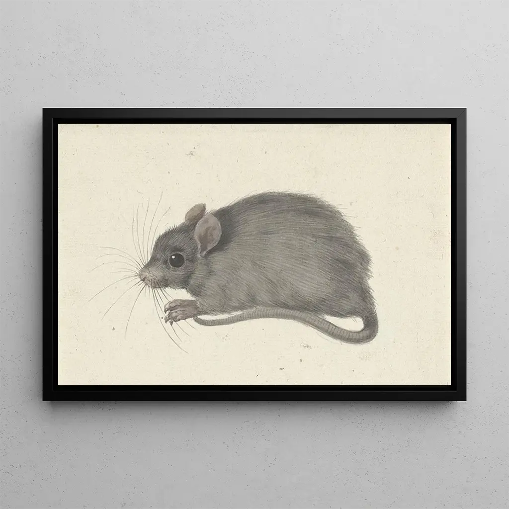 Mouse Turning Left: A Moment of Animal Curiosity. In this artwork, a mouse is frozen in an intriguing posture, turned to the left, capturing attention with its lively and curious gaze. The meticulous details of the fur and the attentive expression of the animal reveal a delicate and precise painting technique. The soft, natural colors create a warm atmosphere, inviting silent contemplation of wildlife. This depiction of a fleeting moment in the animal world evokes a deep connection between humans and nature, highlighting the beauty of small things often overlooked. Jean Bernard: A Master of Nature and Everyday Life. Jean Bernard, a 19th-century artist, is renowned for his works celebrating fauna and flora. His style, influenced by realism, aims to capture the truth of nature with great accuracy. Bernard established himself in the art world through his ability to observe and depict animals with a unique sensitivity. Through his creations, he invites us to appreciate the beauty of living beings around us, while bearing witness to a time when animal art held an important place in galleries. A Decorative Acquisition with Multiple Benefits. The art print of Mouse Turning Left is a charming addition to any interior decor, whether it be an office, a bedroom, or a living room. Its print quality ensures exceptional fidelity to the details of the original work, bringing a touch of nature and delicacy to your space. This piece, with its captivating subject and soothing ambiance, draws the eye and stimulates the imagination. By choosing this canvas, you give your interior a piece that evokes the beauty of the animal world and invites reflection on our relationship with nature.