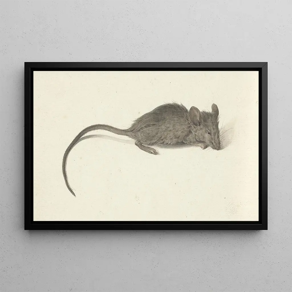 The art print of "Mouse Looking to the Right" is an intriguing piece that captures attention through its originality and boldness. This painting, depicting a mouse in a dynamic posture, plays with contrasts of colors and textures to create an atmosphere that is both playful and captivating. The artist uses expressive brushstrokes and vivid hues to bring this small rodent to life, transforming a mundane subject into a scene full of character. The work evokes childlike curiosity, inviting the viewer to observe the details and subtleties of nature more closely.