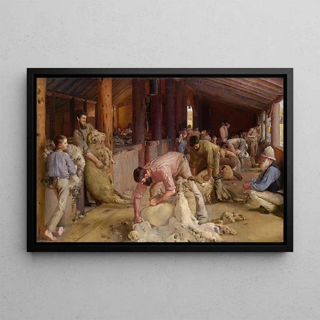 Tom Roberts, born in 1856 in London, is considered one of the founders of Australian impressionism. Established in Australia, he draws inspiration from the landscapes and daily life of his new country. His works reflect a deep respect for local culture and traditions. Roberts was influenced by European masters, but he developed a unique style that highlights light and color. His commitment to the Australian art movement was crucial in the emergence of a national artistic identity. The art print of "Tondre les moutons" demonstrates his skill in capturing authentic moments of Australian life.