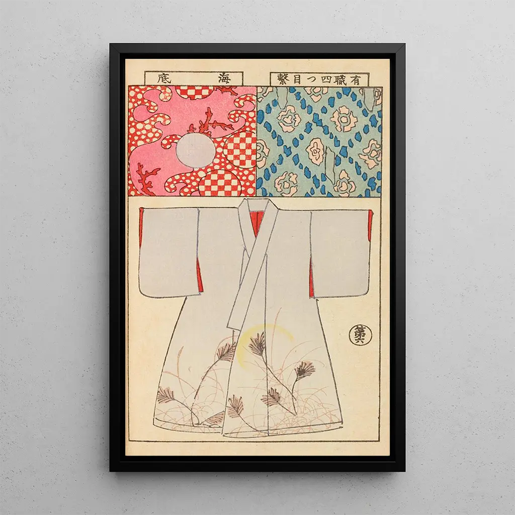 The art print Moyo bijutsu benran Pl08 stands out with its vibrant color palette and motifs inspired by flora and fauna. This piece evokes a sense of lightness and movement, as if the depicted elements come to life before our eyes. The refined technique of the artist, using delicate inks, allows for subtle nuances that add depth to every detail. Contemplating this canvas, one feels a deep connection with nature, an invitation to appreciate its ephemeral beauty.