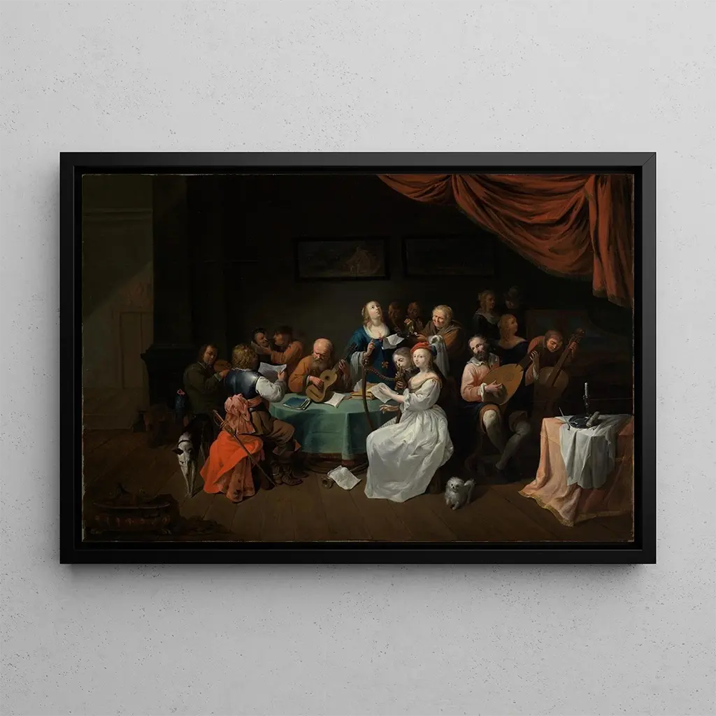 The art print of "Musical Entertainment" immerses us in a universe where music and art meet with brilliance. The vibrant colors and dynamic shapes of the canvas evoke a festive atmosphere, full of life and energy. The characters, dressed in flamboyant costumes, seem to dance to the rhythm of melodies, creating a vibrant scene that captures attention. Every detail, from musical instruments to the joyful expressions of the musicians, contributes to a celebratory ambiance, inviting the viewer to feel the magic of music through visual art.