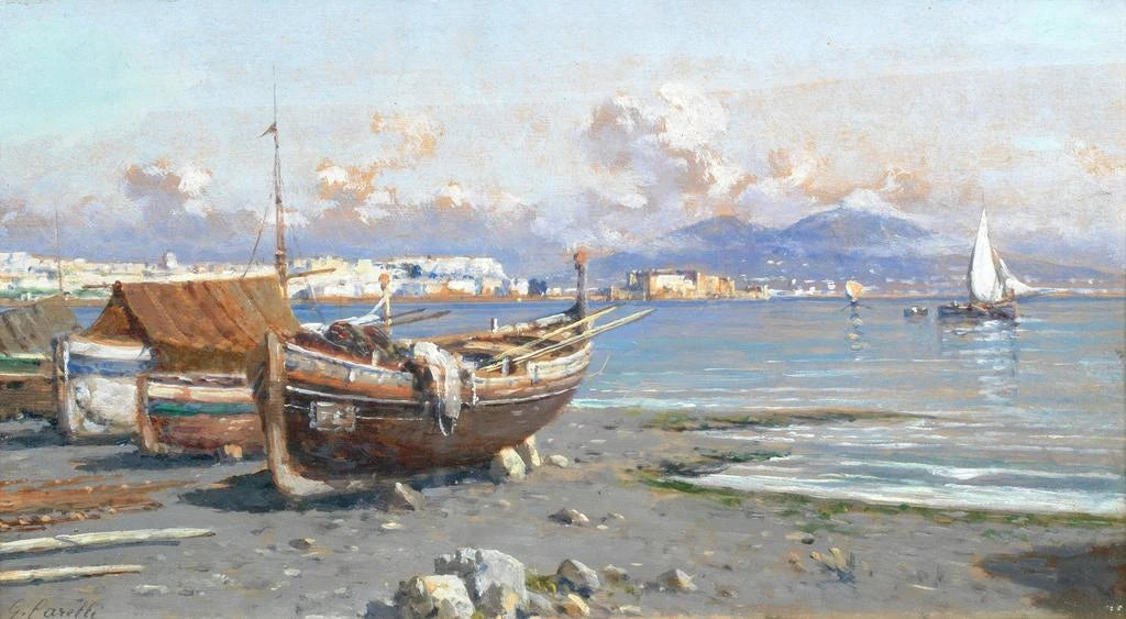 La Baie de Naples: a vibrant painting of life and light The Bay of Naples, an iconic work by Giuseppe Carelli, transports the viewer to the heart of a sunlit Mediterranean landscape. The vivid colors, ranging from the deep blues of the sea to the lush greens of the hills, create a lively and enchanting atmosphere. Carelli's technique, characterized by fluid brushstrokes and meticulous attention to detail, brings to life every element of the painting, from the sailboats peacefully sailing to the colorful houses lining the bay. This artwork invites contemplation, evoking memories of holidays and serenity. Giuseppe Carelli: a master of Italian landscape painting Giuseppe Carelli, active in the 19th century, is renowned for his seascapes that capture the beauty of the Italian coast. Influenced by the Romantic movement, he skillfully combined realism and poetry in his works. Carelli spent much of his career in Naples, where he was inspired by the region's unique light and the daily life of fishermen. His style, both vibrant and delicate, marked his era and continues to influence contemporary artists. The Bay of Naples is one of his masterpieces, perfectly illustrating his talent for paying homage to the natural beauty of his country. A decorative piece with multiple assets The art print of The Bay of Naples is an ideal decorative piece to enhance your interior, whether in a living room, office, or bedroom. Its printing quality guarantees remarkable fidelity to the colors and details of the original work, adding a touch of elegance and serenity to your space. This painting, with its undeniable aesthetic appeal, sparks conversations and invites escapism. By choosing this canvas, you opt for timeless decoration that will charm your guests while offering you a moment of daily contemplation.