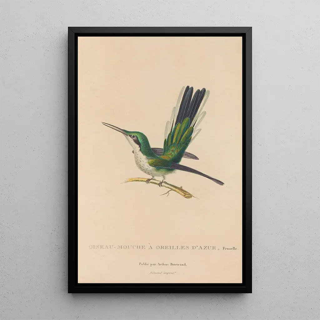 Histoire naturelle des oiseaux-mouches Pl11 : a journey into avian exotism The art print "Histoire naturelle des oiseaux-mouches Pl11" by René Primevère Lesson is a captivating exploration of ornithological wonders. This reproduction features a vibrant color palette and astonishingly detailed craftsmanship, illustrating the diversity of hummingbirds. Each bird is depicted with a delicacy that evokes the lightness of their flight, while natural backgrounds enhance the sense of movement and vitality. Lesson's engraving technique captures the texture of the plumage, making this piece both scientific and poetic—a true invitation to wonder. René Primevère Lesson: an artist at the crossroads of art and science René Primevère Lesson, active in the 19th century, is recognized as a pioneer in the field of ornithological illustration. His passion for birds and his desire to depict them faithfully led him to create remarkable works such as "Histoire naturelle des oiseaux-mouches Pl11." Influenced by the scientific advances of his time, he skillfully combined rigorous observation with refined aesthetics. His illustrations not only enriched knowledge of avian species but also set a high standard for naturalist artists. Lesson remains an iconic figure, whose legacy continues to inspire art and nature enthusiasts. A decorative acquisition with multiple advantages The art print of "Histoire naturelle des oiseaux-mouches Pl11" is a valuable addition to any art collection, bringing a touch of exotism and color to your interior. Whether in a living room, office, or bedroom, this canvas draws the eye and sparks curiosity. Its printing quality ensures remarkable fidelity to the details of the original work, guaranteeing an enriching visual experience. By choosing this piece, you opt for a decoration that combines beauty and culture, transforming your space into a true sanctuary of nature.