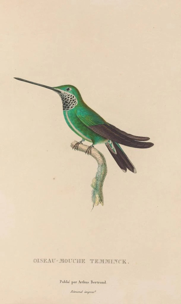 René Primevère Lesson, naturaliste et illustrateur français, a marqué le XIXe siècle par ses contributions à l'ornithologie. Son approche artistique, qui mêle observation scientifique et sensibilité esthétique, a permis de faire découvrir la richesse aviaire à un large public. Son œuvre "Histoire naturelle des oiseaux-mouches" est emblématique de son époque, où l'exploration et la documentation des espèces étaient primordiales. Lesson a su capturer l'essence même de ces oiseaux, faisant de ses illustrations des références dans le domaine de l'ornithologie.