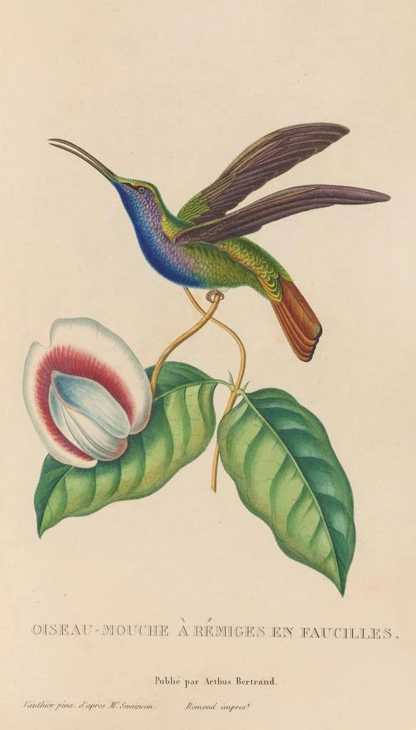 René Primevère Lesson, a 19th-century naturalist and illustrator, skillfully combined his love for nature with his artistic talent. His works, especially those dedicated to birds, reflect an era when science and art converged to explore biodiversity. Influenced by the explorations of his time, he managed to capture the very essence of hummingbirds, making him a respected artist in the field of ornithology. His art prints are not only works of art but also valuable documents for understanding avian species.