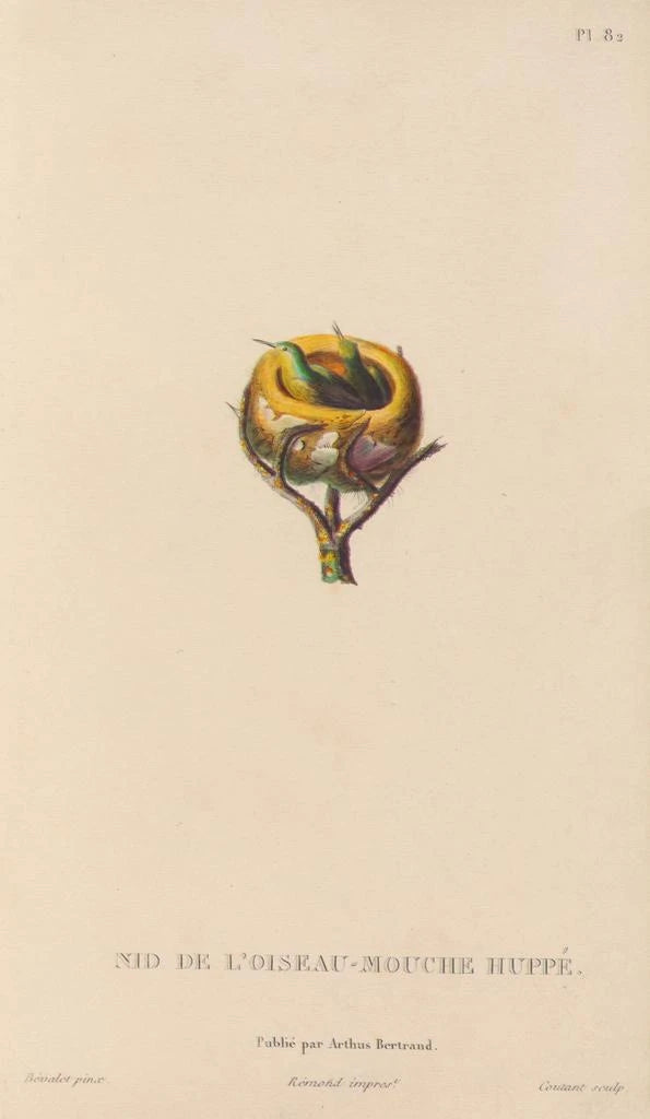 René Primevère Lesson, naturalist and ornithologist of the 19th century, played a crucial role in documenting avian species. His work is set in a period when the study of nature and the classification of species were flourishing. Influenced by the discoveries of his time, he skillfully combined science and art, creating illustrations that have become references. "Histoire naturelle des oiseaux-mouches" testifies to his commitment to representing biodiversity with rigor and aesthetic appeal. Lesson thus contributed to enriching our understanding of birds, while leaving a lasting artistic legacy.