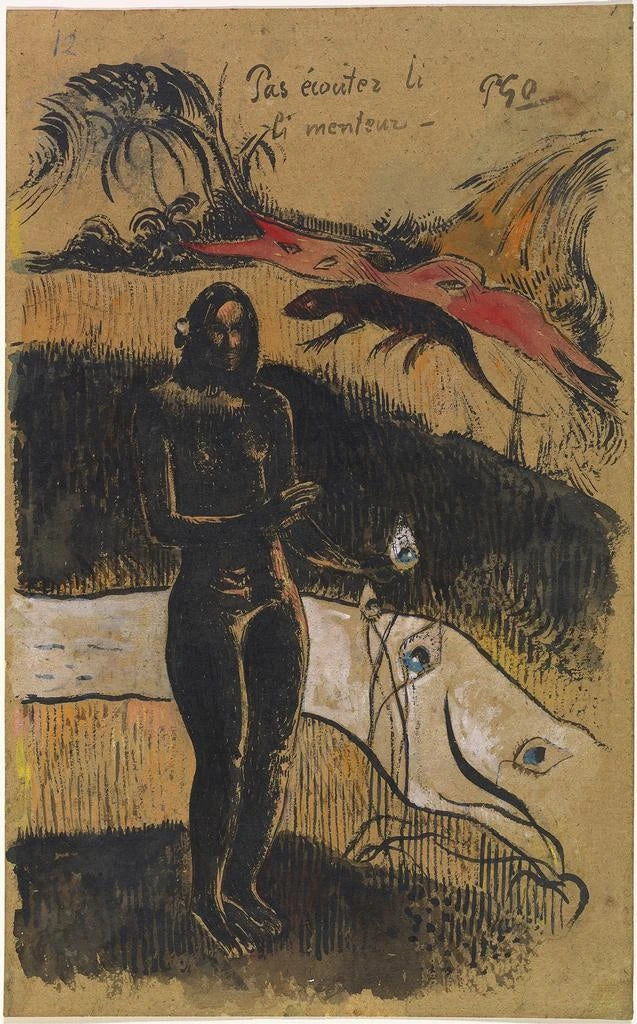 "Nave Nave Fenua" is an iconic art print by Paul Gauguin, evoking the wild and mystical beauty of Polynesian landscapes. The canvas is characterized by vibrant colors and stylized shapes, creating an atmosphere of dream and escape. Shades of green, blue, and yellow intertwine to form a lively tableau, where nature seems to vibrate with energy. Gauguin's technique, blending Impressionism and symbolism, invites the viewer to immerse themselves in a universe where reality and dream merge, offering a true invitation to escape.