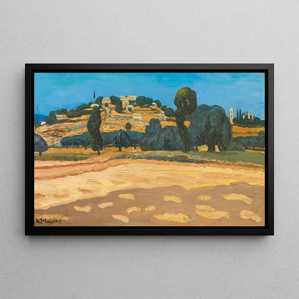 The Naxos art print by Konstantinos Maleas transports us to the captivating landscapes of the Aegean Sea. The shades of blue, harmoniously blended with touches of green and sand, evoke an atmosphere of serenity and contemplation. Maleas's impressionist technique, characterized by free and expressive brushstrokes, brings this canvas to life, creating a sense of movement and light. Every element, from the waves to the hills, seems to vibrate under the effect of a dazzling sun, inviting the viewer to immerse themselves in this idyllic scene.