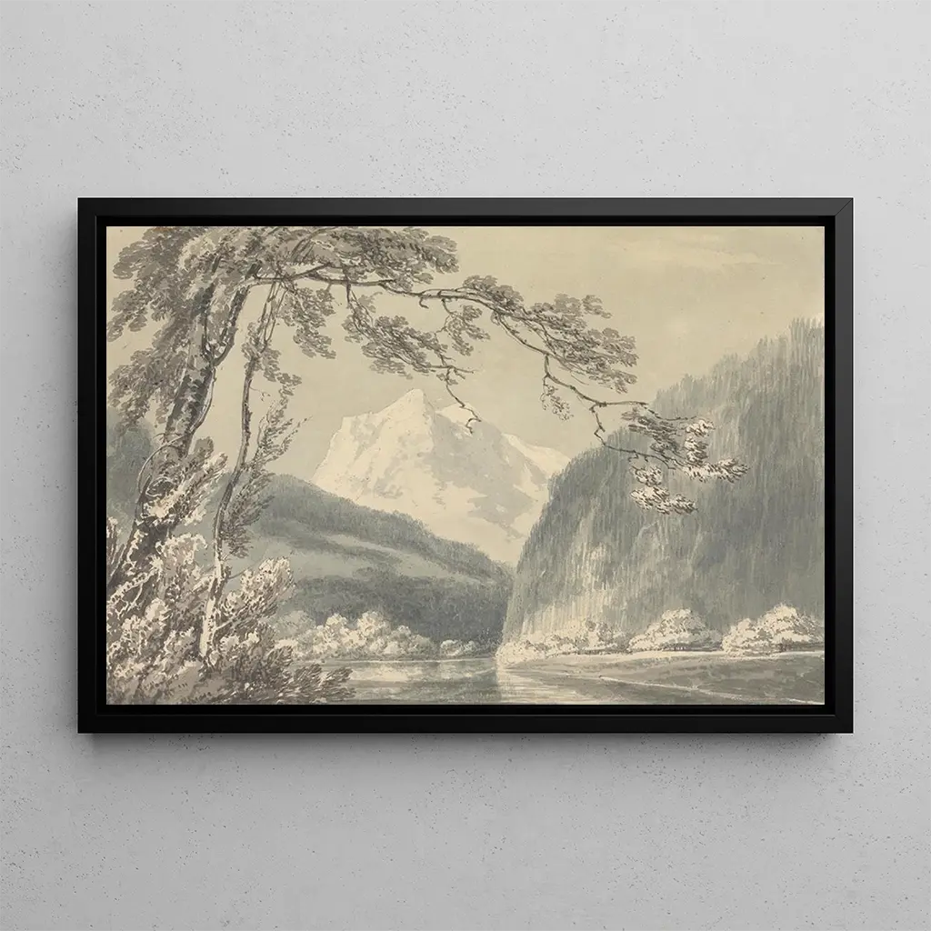 The art print Near Grindelwald by Joseph Mallord William Turner evokes the majesty of alpine scenery. In this work, Turner depicts a grandiose panorama, where the mountains stand proudly under a dramatic sky. The vibrant colors, ranging from deep blues to bright oranges, create an atmosphere that is both dynamic and serene. Turner's technique, characterized by bold brushstrokes and radiant light, gives this canvas a striking depth. Every element of the landscape seems alive, inviting the viewer to explore the wonders of nature.