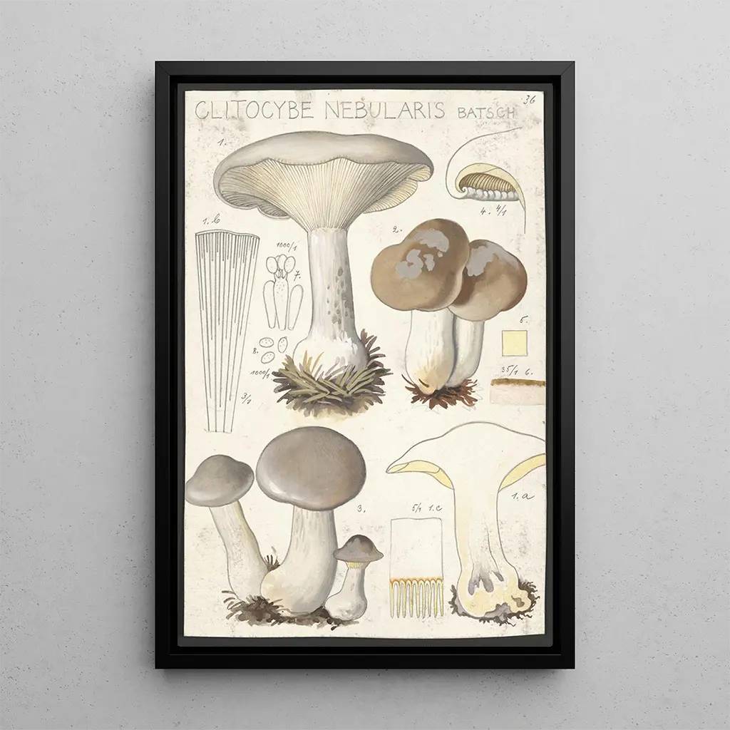 In this art print of the Clitocybe nébuleux, Hans Baldung immerses us in the heart of a mysterious forest, where light filters through dense foliage. The shades of green and brown blend harmoniously, creating an atmosphere that is both soothing and intriguing. Baldung's technique, characterized by striking realism, highlights the delicate details of this mushroom, making the texture of its cap almost tangible. This piece invites the viewer to silent contemplation, awakening a curiosity for the secrets that nature holds. Hans Baldung: a master of the German Renaissance Hans Baldung, also known as Hans Baldung Grien, was a painter and engraver of the 16th century, recognized for his bold style and themes often related to nature and mythology. A student of Dürer, he developed a unique approach, blending Gothic and humanist influences. Baldung frequently explored the relationship between humans and nature, as exemplified by this artwork. His interest in mushrooms and plants is part of an artistic tradition that values meticulous observation of the natural world, demonstrating the importance of botany in his time. A decorative piece with multiple assets This art print of the Clitocybe nébuleux is an ideal decorative item to enhance the ambiance of your living room, office, or bedroom. Its printing quality guarantees remarkable fidelity to the colors and details of the original work, while adding a touch of elegance to your interior. The artwork draws the eye and sparks conversations, thanks to its captivating subject and refined aesthetic. By choosing this canvas, you opt for a piece that combines artistic beauty and homage to nature, while adding a note of mystery to your decor.