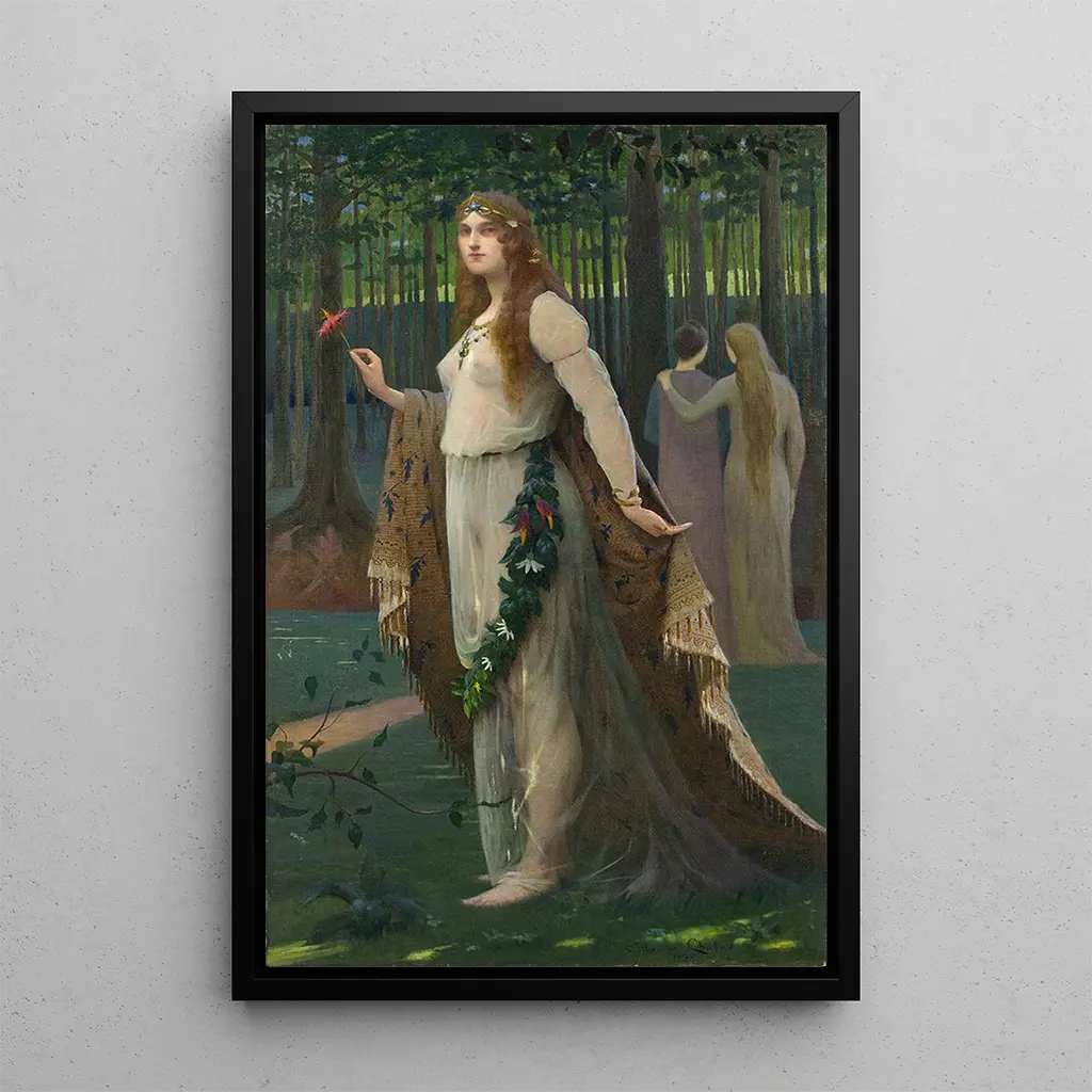 "Néma" is a captivating art print by Maurice Chabas that transports us into a universe filled with mystery and poetry. The canvas, rich in vivid colors and delicate textures, depicts an enigmatic scene where the characters appear frozen in a moment of contemplation. The shades of blue and violet, blended with golden touches, create an atmosphere that is both dreamlike and introspective. Chabas's technique, which combines finesse and expressiveness, allows us to feel the deep emotions of the figures portrayed, making this art print particularly moving. Maurice Chabas: a journey into the heart of symbolism Maurice Chabas, an emblematic figure of French symbolism, was able to capture the essence of human emotions through his art prints. Active at the end of the 19th century, he drew inspiration from the artistic currents of his time, notably Romanticism and Pre-Raphaelitism. His career was marked by a constant search for harmony between man and nature, as well as an exploration of mystical and spiritual themes. "Néma" perfectly illustrates this quest, offering a poetic and introspective vision that invites reflection on the human condition and its mysteries. A decorative acquisition with multiple advantages The art print of "Néma" is an ideal decorative choice for those wishing to add a touch of originality to their interior. Whether in a living room, office, or bedroom, this artwork will captivate attention and spark conversations. Its printing quality guarantees exceptional fidelity to the details and colors of the original work, allowing you to fully enjoy Chabas's magic. By integrating "Néma" into your space, you add not only a piece of art but also an invitation to escape and contemplation, enriching your daily environment.