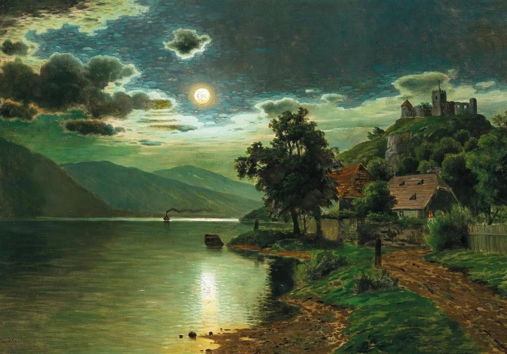 Night by moonlight on a lake - Fritz Chwala | Art print