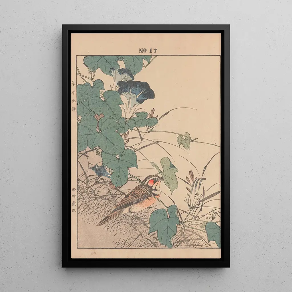 The Keinen kach gafu Pl019 art print is a vibrant piece that highlights the richness of Japanese flora. With bright colors and delicate patterns, this work transports the viewer to the heart of a lush garden. The woodblock printing technique used by the artist allows for each detail to be rendered with remarkable precision, creating an atmosphere that is both joyful and soothing. This canvas invites deep contemplation, where each element seems to tell a story of natural beauty.