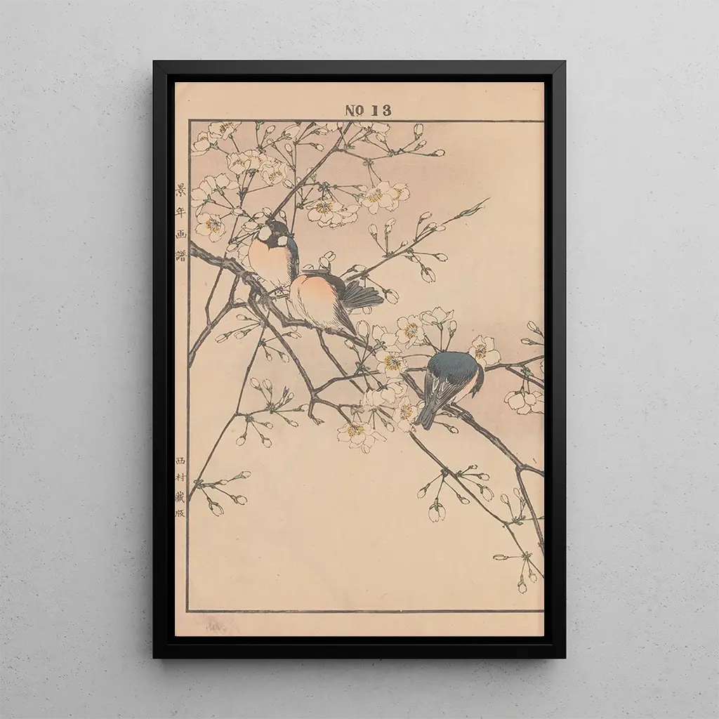 The art print of Keinen kach gafu Pl059 transports us to a lush garden where each flower seems to tell a story. Imao Keinen, with his mastery of colors and shapes, manages to capture the very essence of natural beauty. The delicate shades of pink, green, and yellow intertwine harmoniously, creating an atmosphere of serenity and joy. The woodblock print technique, inherited from Japanese traditions, gives this piece depth and texture that invite visual exploration, making this canvas a true masterpiece.