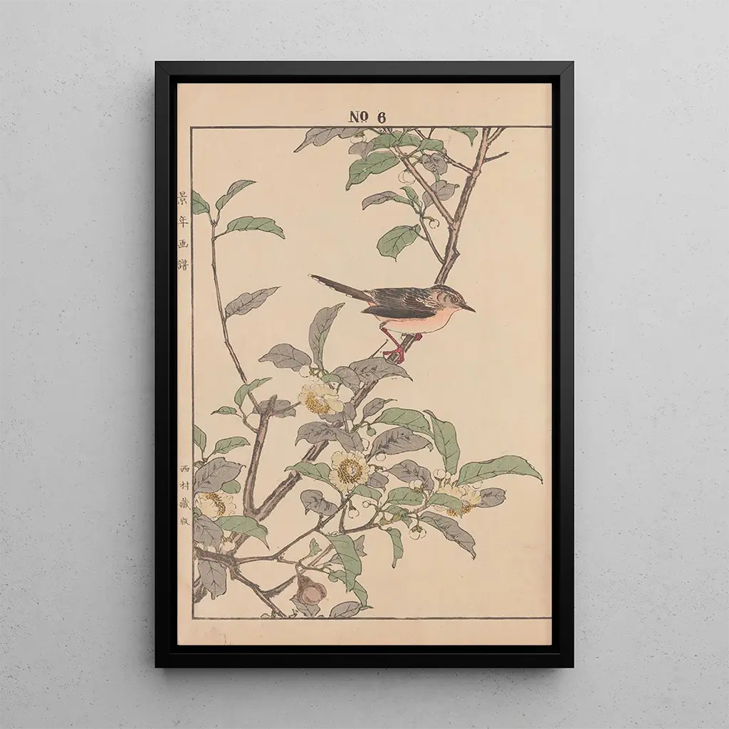 Keinen kach gafu Pl129 art print takes us into a delicate universe where nature flourishes with grace. The soft colors and refined patterns evoke a perfect harmony between the elements. Every detail is meticulously crafted, revealing the technical mastery of the artist. The atmosphere emanating from this canvas is soothing, inviting contemplation and serenity. The flowers and birds, symbols of ephemeral beauty, blend in a visual ballet, creating a work that transcends time and space.