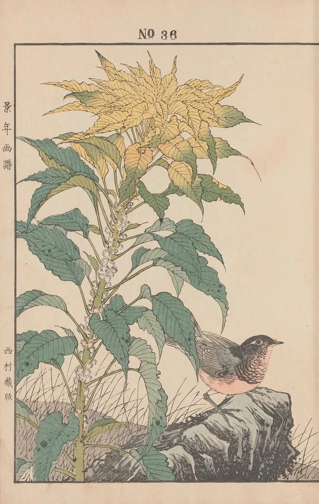 Keinen kach gafu Pl039 art print immerses us in a universe where nature is highlighted with extraordinary delicacy. The soft colors and meticulous details of the flowers and birds create a calming, almost meditative atmosphere. The technique of woodblock printing on paper, typical of the Edo period, allows the artist to capture the ephemeral beauty of Japanese flora and fauna. Each element seems to vibrate under the viewer's gaze, inviting silent and respectful contemplation of nature.