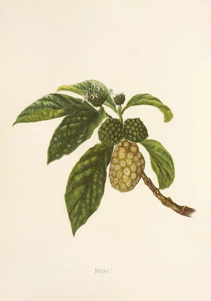 In this captivating artwork, Noni, Isabella McHutcheson Sinclair transports us to the heart of vibrant and exuberant nature. The vivid colors, ranging from deep greens to touches of golden yellow, evoke the richness of tropical flora. The artist's technique, blending watercolor and oil, creates an almost dreamlike atmosphere, where each leaf seems to vibrate under the light. Sinclair manages to capture not only the visual beauty of nature but also its spiritual essence, inviting the viewer to a silent and respectful contemplation of this living world.