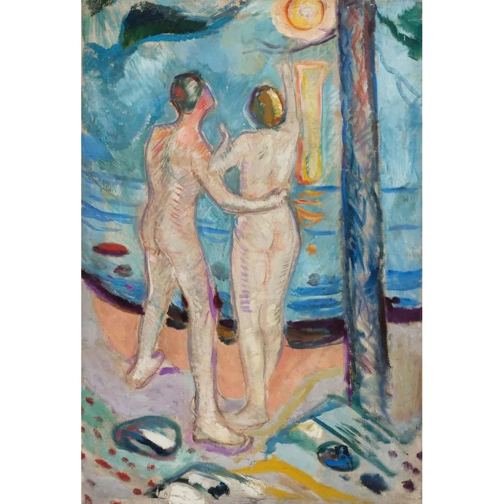 Couple nu sur la plage : une étreinte au bord des vagues Dans cette œuvre emblématique, Edvard Munch capture l'intimité d'un couple sur une plage, enveloppé par la douceur des vagues et la lumière du soleil. Les couleurs chaudes et les formes fluides évoquent une atmosphère de passion et de sérénité. La technique de Munch, mêlant peinture à l'huile et coups de pinceau expressifs, crée une sensation de mouvement, presque comme si le couple était en train de danser avec les éléments. L'arrière-plan, flou et suggestif, accentue l'intimité de la scène, invitant le spectateur à ressentir l'émotion brute qui émane de cette étreinte. Edvard Munch : un pionnier de l’expressionnisme Né en 1863 en Norvège, Edvard Munch est souvent considéré comme l'un des précurseurs de l'expressionnisme. Sa carrière artistique est marquée par une exploration profonde des émotions humaines, influencée par des événements tragiques de sa vie personnelle, tels que la maladie et la mort. Munch a su intégrer des éléments symbolistes et impressionnistes dans son travail, créant ainsi un style unique qui transcende les époques. Ses œuvres, dont "Le Cri" est la plus célèbre, reflètent les angoisses et les passions de l'âme humaine, faisant de lui une figure incontournable de l'art moderne. Une acquisition décorative aux multiples atouts La reproduction du tableau "Couple nu sur la plage" est une pièce décorative idéale pour enrichir votre intérieur, que ce soit dans un salon, un bureau ou une chambre. Sa qualité d'impression garantit une fidélité remarquable aux couleurs et aux détails de l'œuvre originale, permettant de ressentir toute la profondeur émotionnelle de la scène. Avec son attrait esthétique indéniable, cette toile apporte une touche de romantisme et de sophistication à votre décoration, tout en suscitant des conversations autour de l'art et de l'amour.