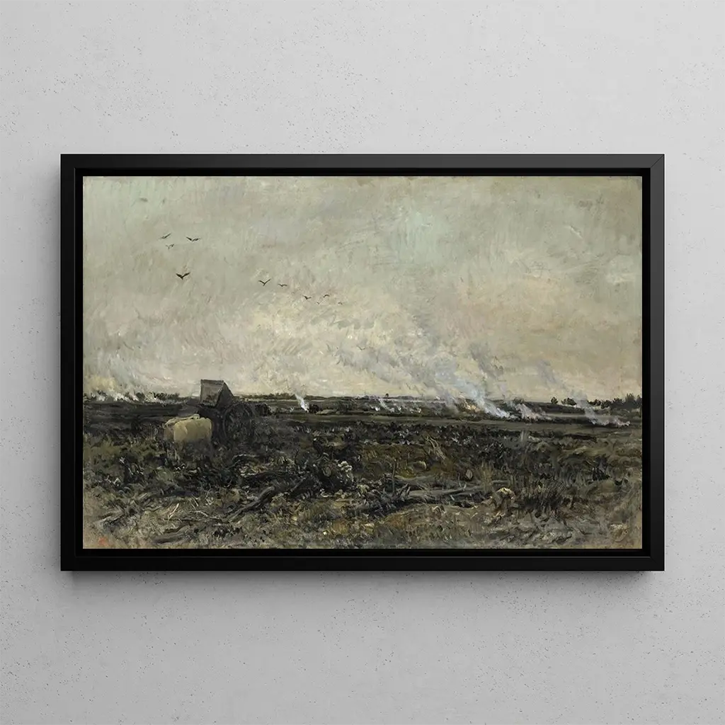 October: A Tribute to Nature in Full Transformation The art print October by Charles François Daubigny evokes the fleeting beauty of autumn. This canvas, rich in shades of yellow, orange, and red, captures the golden light of an October afternoon. The brushstrokes, both delicate and vigorous, bring to life a landscape where nature prepares for winter. The trees, majestic and vibrant, stand proudly, while the sky, tinged with blue and clouds, adds a poetic dimension to the scene. The atmosphere conveyed by this work invites contemplation and reflection on the cycle of seasons. Charles François Daubigny: A Master of Impressionist Landscape Charles François Daubigny, an emblematic figure of the Impressionist movement, mastered capturing the essence of nature through his works. Born in 1817, he was influenced by the great masters of his time, such as Corot and Rousseau. His career spans the second half of the 19th century, a period when art was liberated from academic conventions. Daubigny is recognized for his ability to depict light and atmosphere, transforming ordinary scenes into poetic moments. His work paved the way for many artists, making him a pillar of landscape art history. A Decorative Acquisition with Multiple Benefits The reproduction of the October painting is an ideal choice to enhance your interior, whether in a living room, office, or bedroom. Its warm palette and refined details bring a touch of serenity and nature to your decor. The quality of the print guarantees remarkable fidelity to the original work, allowing you to enjoy its beauty daily. By integrating this canvas into your space, you create a welcoming and inspiring atmosphere, while celebrating the talent of Charles François Daubigny and the wonder of nature.