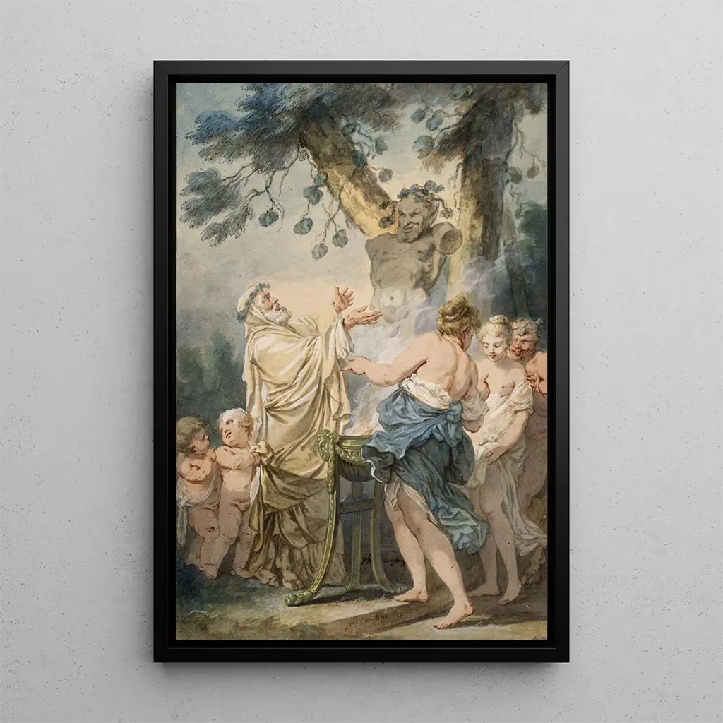 "offrande à Pan" by Jacques-Philippe Caresme is an art print that celebrates the harmony between man and nature. The canvas depicts a bucolic scene where characters, in communion with the god Pan, pay homage to the wild beauty of the world. Earthy tones and greenish shades create a peaceful atmosphere, while the delicate details of the faces and gestures convey deep emotion. Caresme manages to capture the essence of mythology while evoking an intimate connection with nature, making this art print a true invitation to serenity. Jacques-Philippe Caresme: an artist at the heart of neoclassicism Jacques-Philippe Caresme, a prominent figure of the 18th century, is often associated with the neoclassical movement that advocates a return to antique values. His work is characterized by a pursuit of ideal beauty and particular attention to composition. Influenced by the great masters of the Renaissance and Antiquity, Caresme was able to reinterpret myths with a unique sensitivity. His works, such as "L'offrande à Pan," demonstrate his talent for evoking profound stories while respecting the aesthetic canons of his time. The importance of his work lies in his ability to combine tradition and innovation. A decorative acquisition with multiple assets The reproduction of "L'offrande à Pan" is a valuable addition to your interior decoration, whether it is a living room, office, or bedroom. Its print quality ensures remarkable fidelity to the details of the original artwork, offering a true visual pleasure. This art print, with its themes of nature and mythology, brings a calming and inspiring atmosphere to your space. By choosing this canvas, you opt for a piece of art that not only enhances your interior but also invites reflection and escape into a world of beauty and serenity.