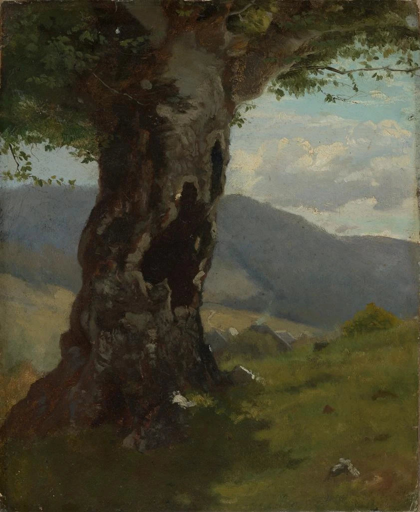 Vieux tronc d'arbre avec vue sur la vallée - Hans Thoma