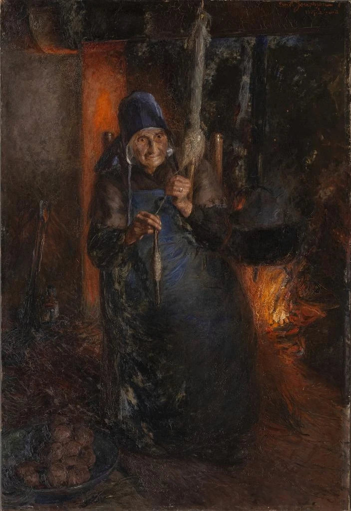 Painting Old woman spinning - Ernst Josephson | Art print
