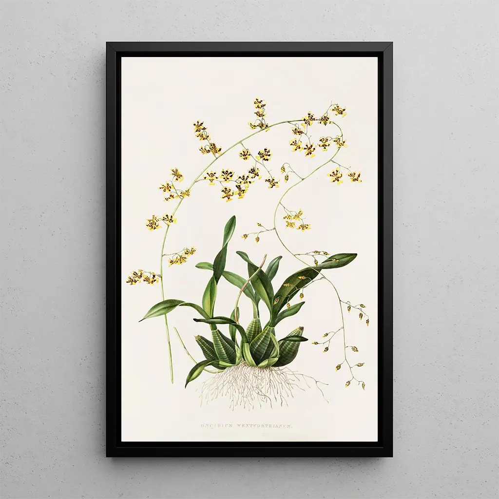 The reproduction of the Oncidium Wentworthianum is an ideal decorative piece to bring a touch of nature into your interior. Whether in a living room, office, or bedroom, this artwork integrates harmoniously into various decorating styles. Its printing quality guarantees remarkable fidelity to the colors and details of the original work, making this canvas a true aesthetic asset. By choosing this reproduction, you opt for a piece that not only beautifies your space but also evokes the fleeting beauty of nature.