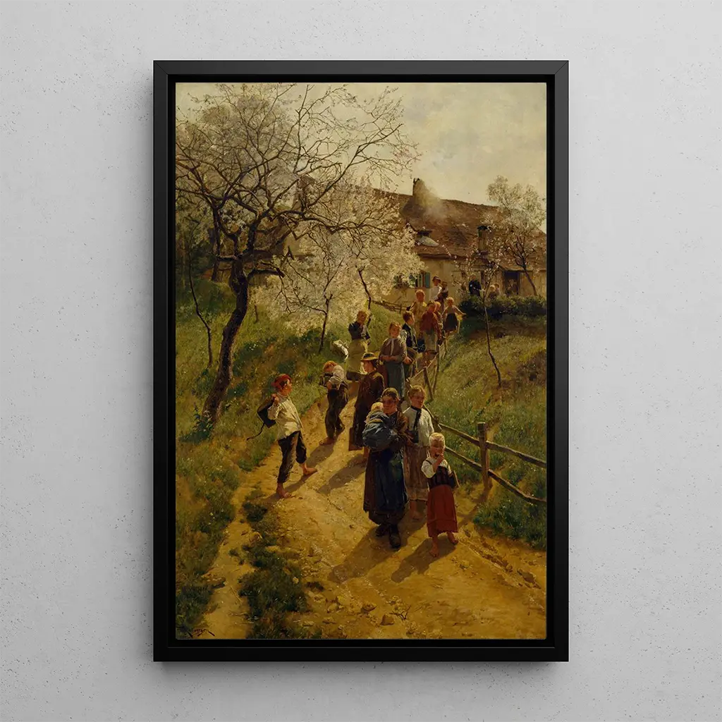 Friedrich Kallmorgen, a 19th-century German painter, is renowned for his poetic landscapes. Influenced by the Romantic movement, he adheres to a tradition that values the beauty of nature. His career, marked by travels across Europe, allows him to explore various techniques and styles, while remaining faithful to his love for natural landscapes. Kallmorgen was able to capture the essence of the seasons, and "One Spring Day" is a perfect example, demonstrating his skill in evoking emotions through scenes of everyday life.