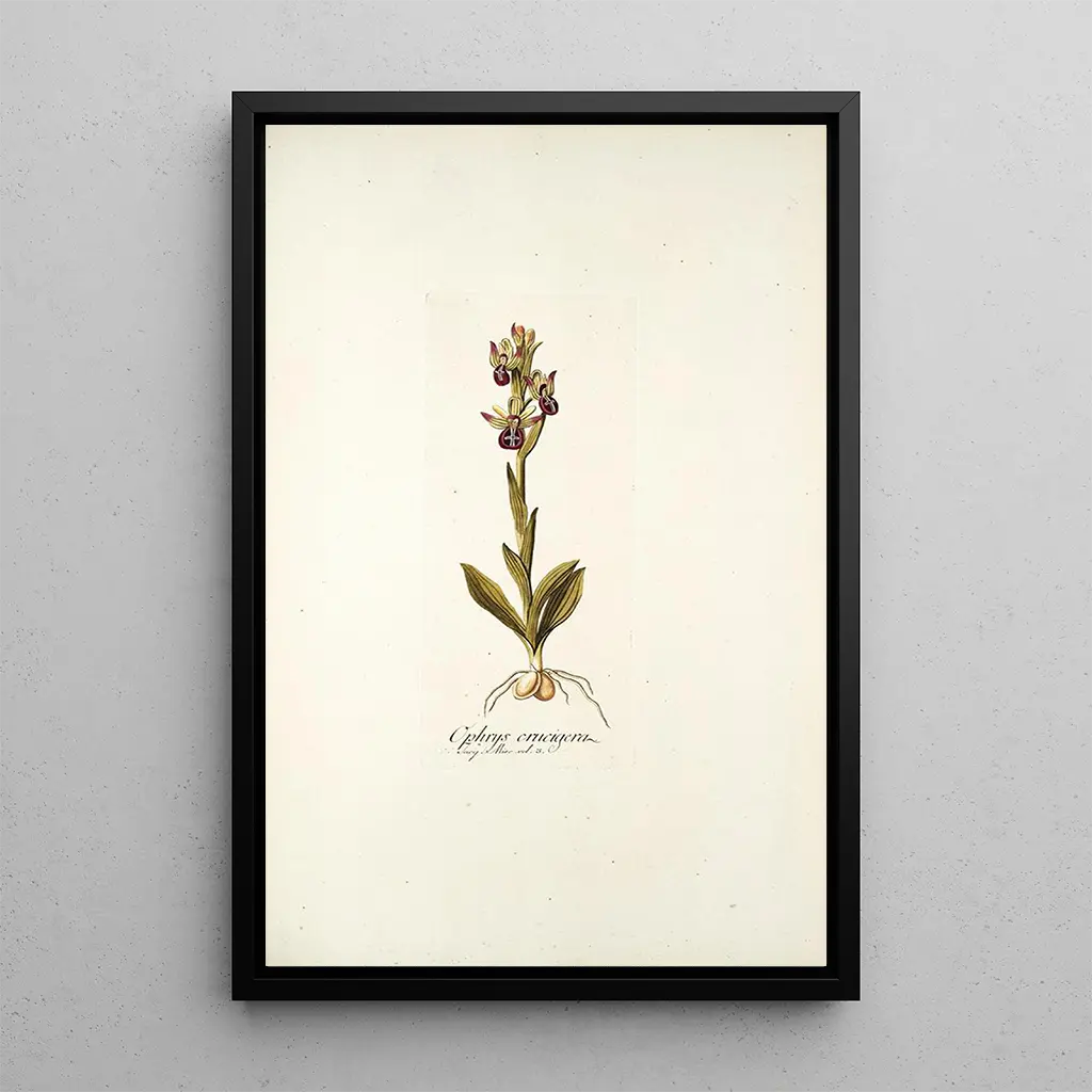 Ophrys crucigera : a glimpse of floral elegance "Ophrys crucigera" by Nikolaus Joseph Freiherr von Jacquin is a work that celebrates the unique beauty of this orchid. The art print depicts with remarkable precision the details of the flower, its delicate colors, and graceful shapes. The technique used, blending watercolor and drawing, creates a light and airy atmosphere, inviting the viewer to marvel at the complexity of nature. Each element of this art print seems to capture a moment of life, revealing the magic of flowers in their natural habitat. Nikolaus Joseph Freiherr von Jacquin : a master of artistic botany Nikolaus Joseph Freiherr von Jacquin, active in the 18th century, is recognized for his significant contributions to botany and art. His travels across Europe and tropical regions enriched his knowledge of plants, which he was able to transcribe with exceptional meticulousness. His artistic approach, combining scientific rigor and aesthetic sensitivity, influenced many artists and botanists. "Ophrys crucigera" is a perfect example of his talent, illustrating the importance of visual documentation in the study of plant species. A decorative acquisition with multiple assets The art print of "Ophrys crucigera" is a decorative choice that harmoniously fits into various environments, whether it be an office, a living room, or a bedroom. Its print quality guarantees fidelity to the details of the original work, while adding a touch of elegance to your interior decor. This art print, with its aesthetic appeal, invites contemplation and appreciation of nature, making it a decorative element that enriches your living space while celebrating floral beauty.