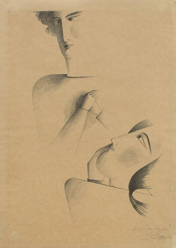 Oskar Schlemmer, artiste majeur du XXe siècle, a joué un rôle crucial dans le développement du Bauhaus, un mouvement qui a révolutionné l'art et le design. Né en 1888, il a été influencé par divers courants artistiques, notamment le constructivisme et le surréalisme. Schlemmer a exploré les interactions entre l'homme, la forme et l'espace, utilisant la danse et le théâtre comme supports d'expérimentation. "Rencontre" illustre parfaitement cette quête, mêlant abstraction et figuration pour créer une œuvre à la fois accessible et profondément symbolique. Son travail continue d'inspirer des générations d'artistes et de designers.