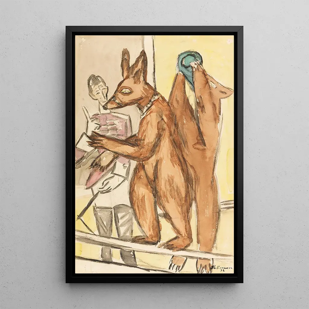 Né en 1884 à Leipzig, Max Beckmann est l'une des figures majeures de l'expressionnisme allemand. Sa carrière s'étend sur plusieurs décennies, marquées par des bouleversements historiques tels que la Première Guerre mondiale et la montée du nazisme. Influencé par des artistes comme Vincent van Gogh et Edvard Munch, Beckmann développe un style unique, caractérisé par des couleurs intenses et des compositions dynamiques. Ses œuvres, souvent autobiographiques, explorent des thèmes de souffrance, d'aliénation et de quête d'identité. "Ours dressés" s'inscrit dans cette lignée, reflétant les angoisses d'une époque troublée.