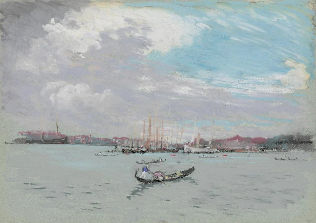 "Outside Venice" by Joseph Pennell captures the magic of the canals of the famous Italian city, offering a unique perspective on its iconic architecture. The canvas stands out with its vibrant colors and flowing lines, evoking the movement of gondolas gliding on the water. Pennell, with his distinctive style, uses engraving and painting techniques to create an atmosphere that is both dynamic and nostalgic. The artwork invites the viewer to immerse themselves in the very essence of Venice, where every brushstroke seems to tell a story of travel and discovery.