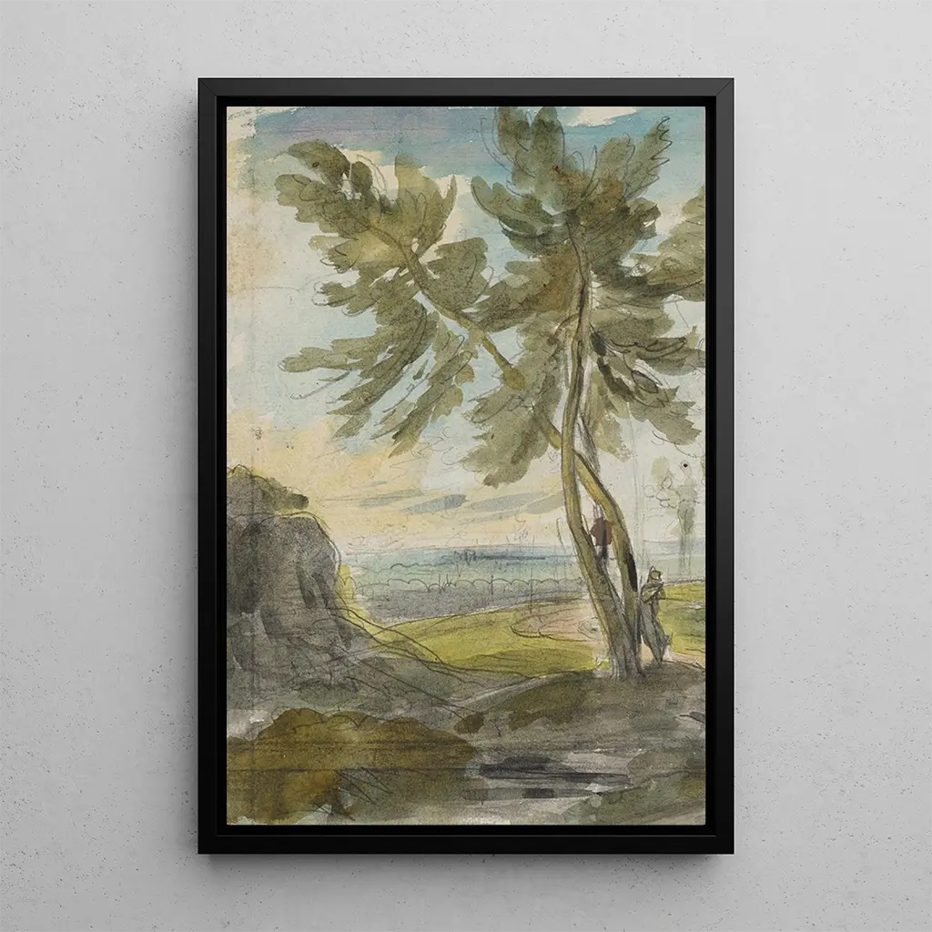 A decorative acquisition with multiple assets. The art print of this pair of trees with staffage figure is a perfect choice to add a touch of serenity to your interior, whether in a living room, office, or bedroom. Its print quality ensures fidelity to the details and colors of the original artwork, while bringing a soothing atmosphere to your decor. This painting, with its aesthetic appeal, will attract art lovers and those seeking a natural and harmonious ambiance. By integrating this canvas into your space, you create an inspiring and welcoming environment.