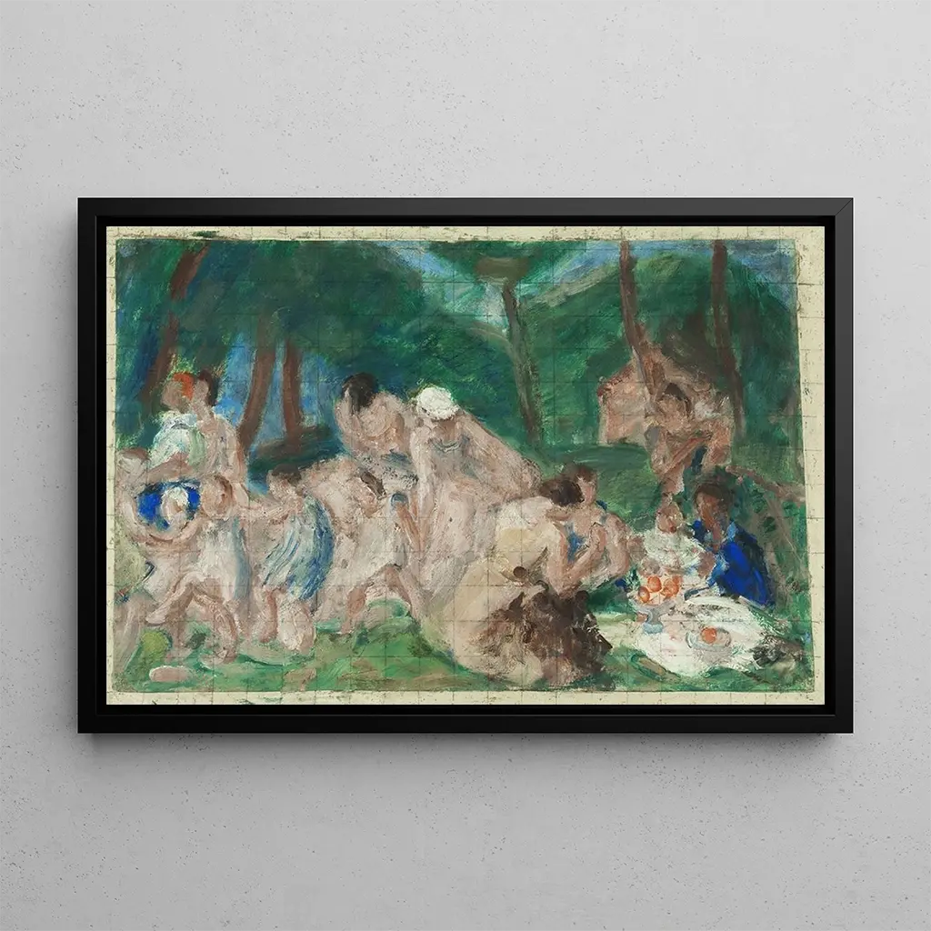 Farandole: a vibrant dance of colors and shapes. "Farandole" by Jean Adler is a work that celebrates movement and the joy of living. The characters, intertwined in a frenetic dance, are depicted with bright colors and dynamic shapes that seem almost to come alive. The artist's technique, blending oil painting with modern influences, creates a festive and lively atmosphere. Every brushstroke evokes a palpable energy, transporting the viewer into a universe of cheerfulness and celebration. The composition, rich in detail and emotion, invites contemplation and escape, making this artwork a true hymn to life. Jean Adler: an artist at the heart of contemporary movements. Jean Adler, active in the 20th century, is recognized for his innovative approach to painting. Influenced by Fauvism and Expressionism, he developed a unique style that combines abstraction and figuration. His works, often marked by themes of conviviality and sharing, reflect an era where art liberates itself from conventions. Adler participated in numerous exhibitions and contributed to redefining the artistic standards of his time. His work continues to be celebrated for its ability to capture the essence of modern life through vibrant and engaging compositions. A decorative acquisition with multiple assets. The art print of "Farandole" is a centerpiece for any interior decoration. Whether in a living space, an office, or a bedroom, this piece will add a touch of dynamism and color. Its printing quality ensures exceptional fidelity to the vivid nuances of the original work, while offering undeniable aesthetic appeal. By integrating this canvas into your decor, you create a joyful and inspiring environment, conducive to exchanges and creativity. This piece not only beautifies your space but also makes it a place of sharing and conviviality.