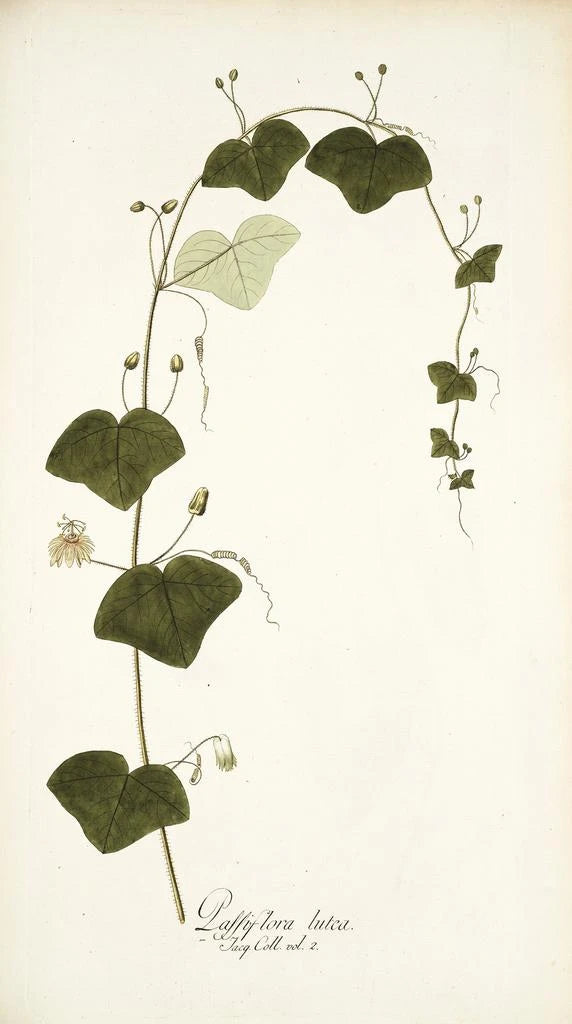 Nikolaus Joseph Freiherr von Jacquin, an emblematic figure of the 18th century, marked the history of botany with his explorations and illustrations. Originating from Austria, he dedicated his life to the study of plants, traveling around the world to discover new species. His artistic approach, influenced by the Enlightenment movement, reflects a deep respect for nature and a desire to represent it faithfully. Passiflora lutea is a shining example of his talent, blending science and art to immortalize the beauty of plants.