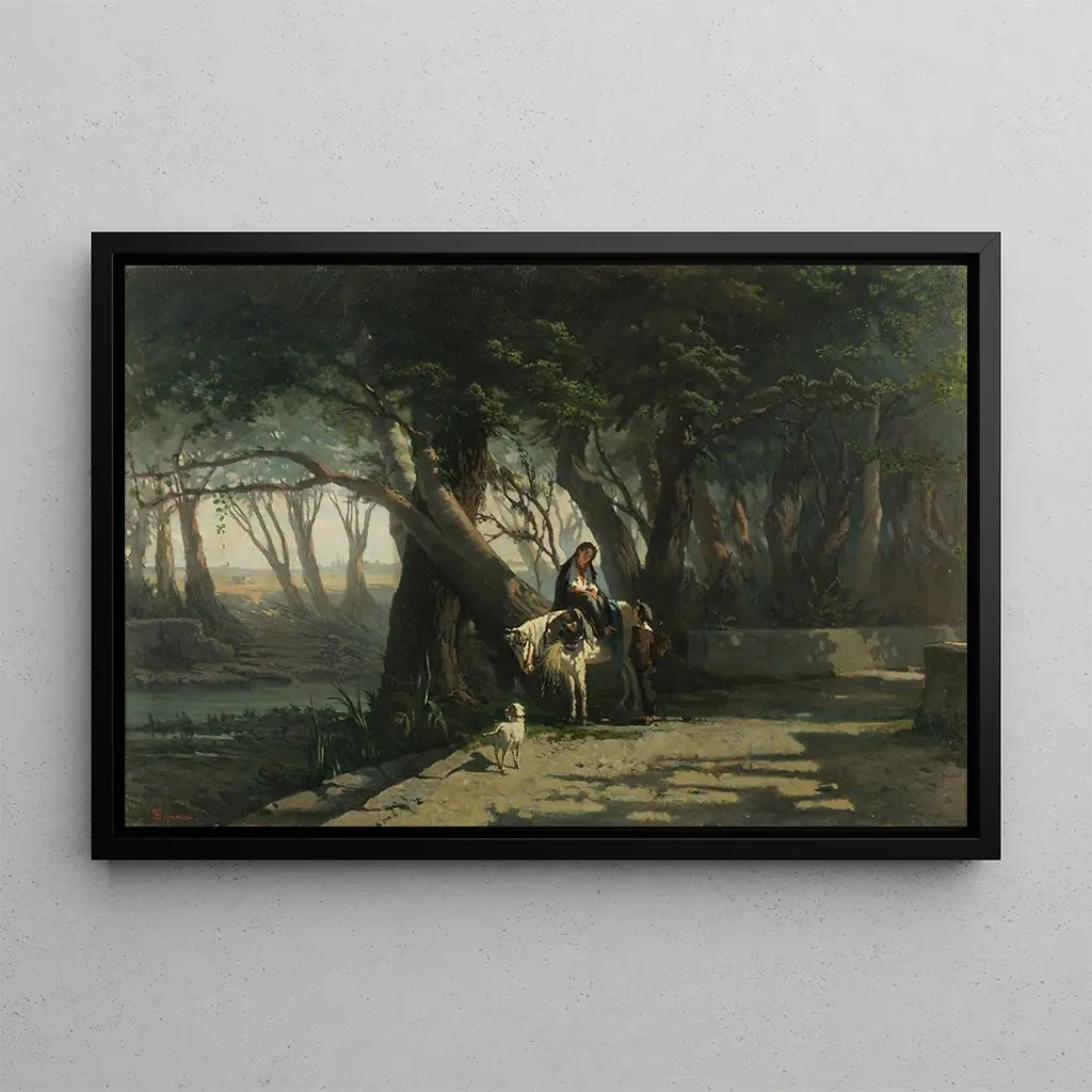 The art print of "Pause dans un bosquet" is a decorative piece that will enhance any space, whether a living room, office, or bedroom. Its print quality and fidelity to the original work guarantee an exceptional aesthetic rendering, bringing a touch of serenity and nature to your interior. This painting, with its soothing tones and contemplative atmosphere, invites relaxation and escape. By choosing this canvas, you opt for a refined and timeless decoration that will delight your guests and enrich your living environment.