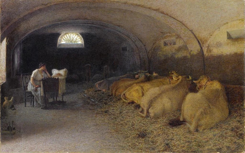 The art print of Peace Stable by Angelo Morbelli evokes a bucolic scene imbued with calm and sweetness. This piece depicts a moment of tranquility in a stable, where the animals seem to live in perfect harmony with their environment. The soft colors and play of light create a soothing atmosphere, inviting the viewer to immerse themselves in this serenity. Morbelli's technique, which blends realism and impressionism, captures the beauty of details, from the textures of the animals to the delicate shadows dancing on the stable floor. Every element of the composition contributes to a sense of peace and simplicity.