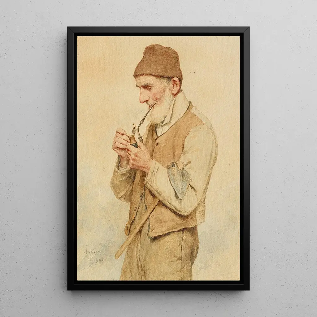 Art print | Peasant woman lighting a pipe - Albert Anker