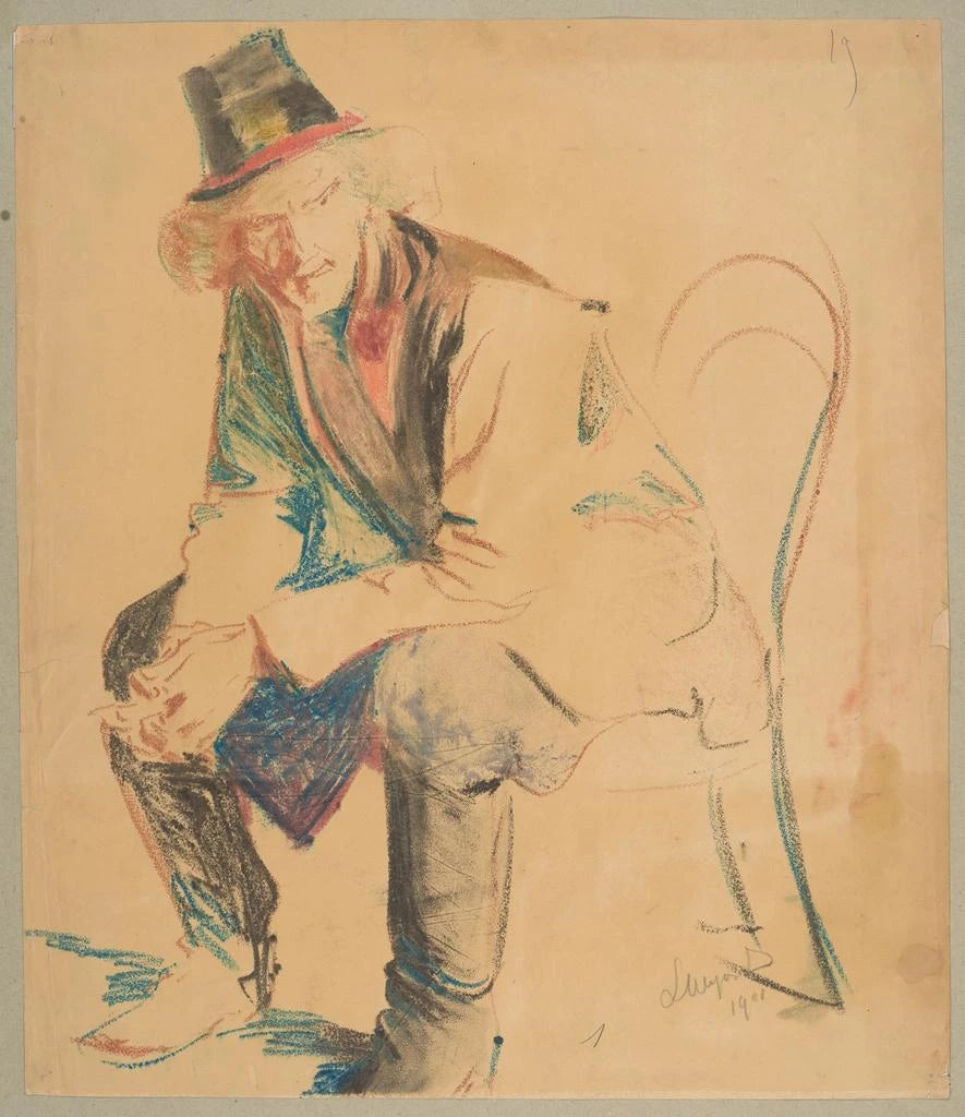 Peasant from Kraków sitting on a chair - Leon Wyczółkowski Source: Paysan de Cracovie assis sur une chaise - Leon Wyczółkowski
