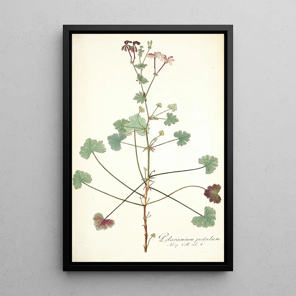 The art print of the Pelargonium patulum is an ideal decorative piece to enhance your interior, whether in a living room, office, or bedroom. Its faithful print quality and aesthetic appeal make it a perfect choice for those who appreciate the beauty of nature. By incorporating this canvas into your decor, you bring a touch of freshness and serenity, while celebrating Jacquin's artistic legacy. This art print is not only a decorative element but also an invitation to contemplation and wonder at floral diversity.