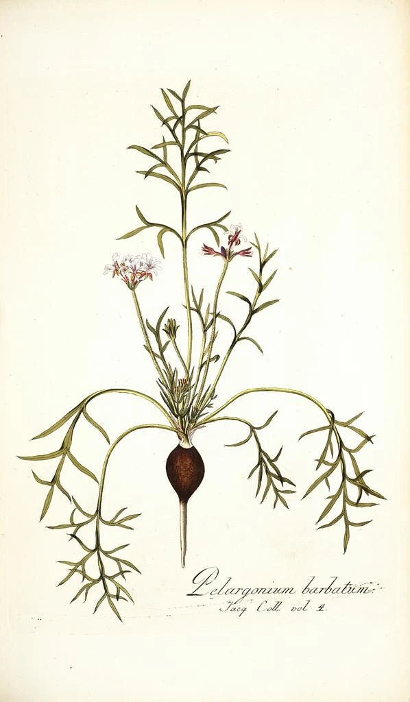 Nikolaus Joseph Freiherr von Jacquin, botanist and artist of the 18th century, played a crucial role in the scientific illustration of plants. Trained at the University of Vienna, he was influenced by the currents of naturalism and rococo, integrating aesthetic elements into his botanical studies. His works, including Pelargonium barbatum, reflect an era when science and art came together to explore biodiversity. Jacquin traveled to colonies, bringing back exotic specimens that enriched the botanical knowledge of his time. His legacy endures, inspiring artists and scientists through the centuries.