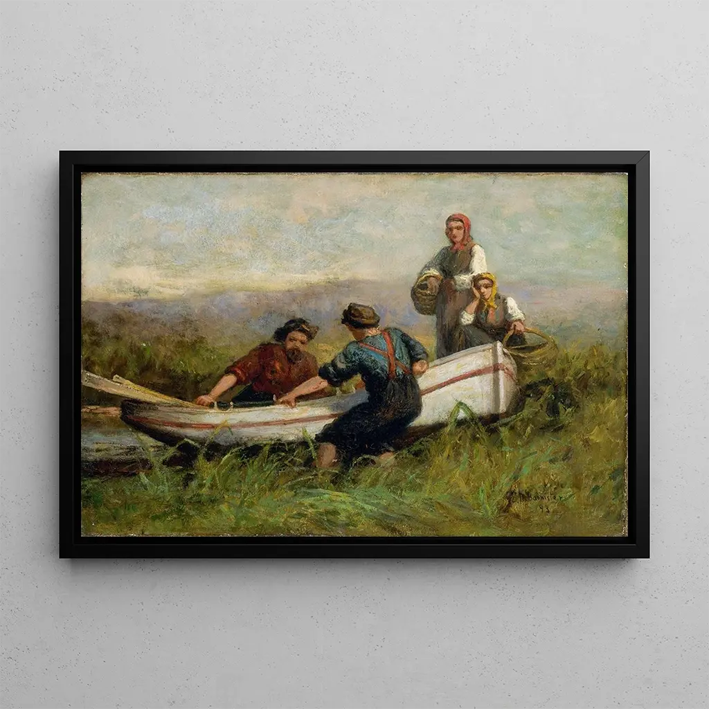 The art print of People near a boat is an ideal decorative piece for various spaces, whether a living room, office, or bedroom. Its print quality and fidelity to the original colors bring a touch of elegance and warmth to your interior. This artwork draws the eye and sparks conversations, thanks to its lively atmosphere and rich story. By choosing this canvas, you invest in a piece that not only beautifies your space but also evokes a deep respect for the artistic heritage of Edward Mitchell Bannister.