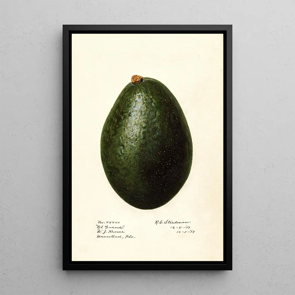 Persea El Grande: a tribute to the richness of nature The art print Persea El Grande is a vibrant celebration of the avocado tree, an iconic tree with lush leaves and flavorful fruits. The rich, deep colors of this piece evoke the warmth of the tropics, while Royal Charles Steadman's technique highlights the meticulous details of the leaves and branches. Every element of the canvas seems alive, transporting the viewer to a lush garden where nature flourishes. This work invites contemplation and appreciation of the natural beauty that surrounds us. Royal Charles Steadman: a pioneer of botanical painting Royal Charles Steadman, active in the early 20th century, left an indelible mark in the world of botanical art. Influenced by the artistic movements of his time, he mastered combining scientific accuracy with artistic sensitivity. His works, often imbued with realism, demonstrate attentive observation of nature and a passion for botany. By depicting exotic plants like the avocado tree, Steadman helped raise public awareness of the beauty and diversity of the plant world, making him an essential artist of his era. A decorative art print with multiple virtues The art print Persea El Grande is a decorative piece that will bring a touch of freshness to your interior. Whether in a living room, office, or bedroom, this painting evokes a warm and welcoming atmosphere. Its reproduction quality ensures remarkable fidelity to the details of the original work, while offering undeniable aesthetic appeal. By choosing this canvas, you opt for a decoration that enriches your space while celebrating the beauty of nature and the art of botanical painting.