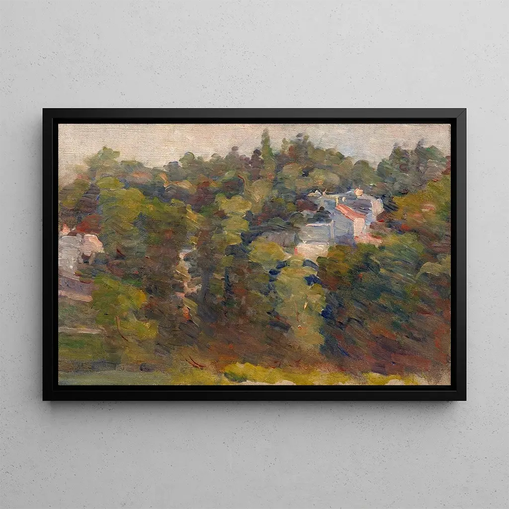The art print Petite vue de Sèvres transports us to a peaceful landscape, where soft light caresses the contours of trees and buildings. The delicate shades of green and blue blend harmoniously, creating an atmosphere of tranquility. Marie Bracquemond's impressionist technique is evident through light, fluid brushstrokes that bring this bucolic scene to life. Every detail, from the reflection in the water to the shadows of the foliage, invites contemplation and escape, making this work a true haven of peace.