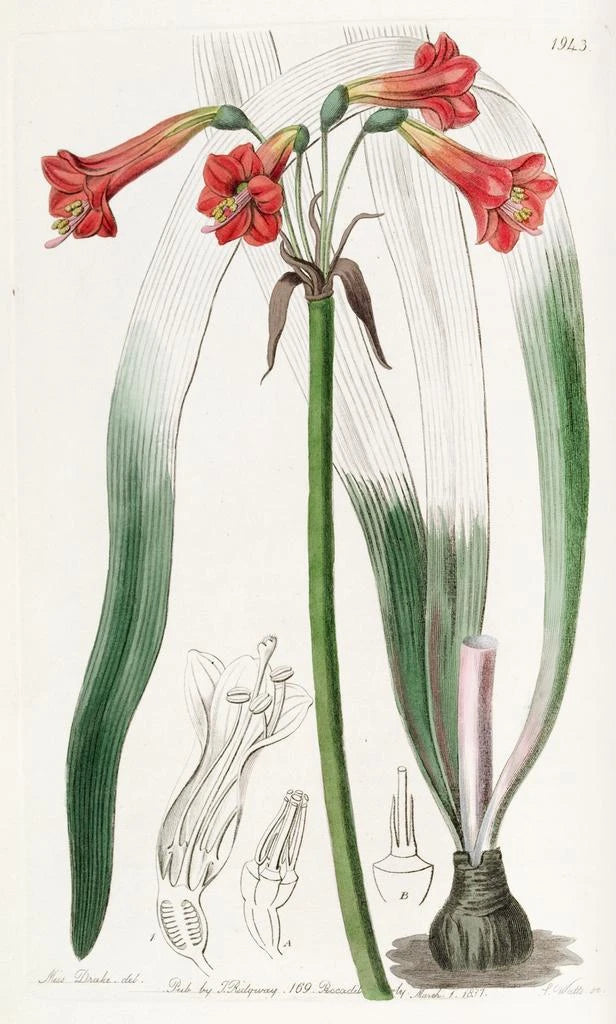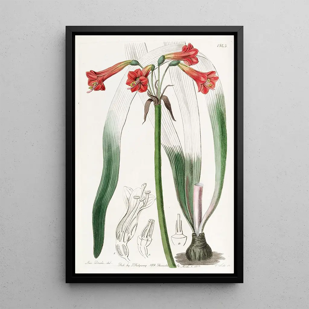 The art print of the Phycella with short tube reveals a unique beauty, where every detail is meticulously rendered. The delicate shades of this flower, ranging from pale pink to violet, are highlighted by precise outlines and subtle shadows. The watercolor technique, mastered by Sydenham Edwards, gives this piece a lightness and transparency that evoke the fragility of nature. The atmosphere conveyed by this canvas is that of a lush garden, where floral diversity blooms in a harmonious dance, inviting wonder.